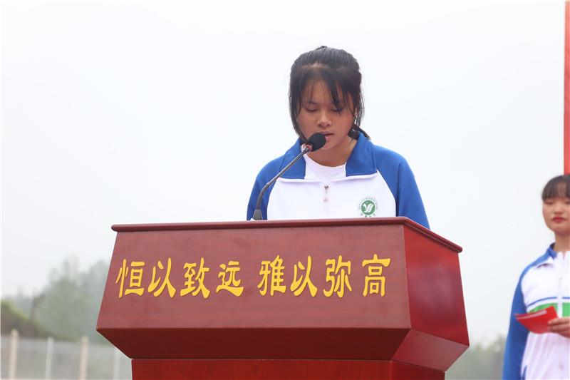 學(xué)生代表1802班姚湘粵同學(xué)立下錚錚誓言,要像雄鷹直沖云天,像水手乘風(fēng)破浪,以汗水澆灌,用智慧耕耘,奪取六月桂冠。
