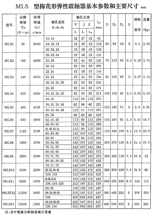 LMS(原MLS)型- 雙法蘭型梅花形彈性聯(lián)軸器基本性能參數(shù)和主要尺寸