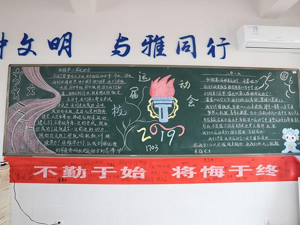 為貫徹《學(xué)校體育工作條例》,弘揚(yáng)體育精神,活躍學(xué)校體育文化生活,增進(jìn)學(xué)生、教職工身心健康,更好地展現(xiàn)恒雅師生的“精氣神”,學(xué)校舉辦了“運(yùn)動(dòng) 健康 文明 快樂(lè)”為主題的第三屆校園體育節(jié)。在校辦公室、教務(wù)處、學(xué)生處、團(tuán)委精心策劃下,開(kāi)展了以運(yùn)動(dòng)會(huì)為主題的黑板報(bào)評(píng)比活動(dòng),一時(shí)間仿佛運(yùn)動(dòng)會(huì)賽場(chǎng)上的一幕幕展現(xiàn)在了各班的板報(bào)上,活靈活現(xiàn)。各班同學(xué)充分發(fā)揮創(chuàng)造才能,密切配合,創(chuàng)作出了一幅幅繪畫(huà)精美、內(nèi)容充實(shí)的黑板報(bào),令人大飽眼福!